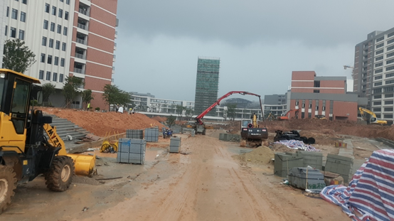 施工現(xiàn)場挖掘機(jī)正忙碌地整平主干路面,運(yùn)輸車絡(luò)繹不絕地運(yùn)送泥土和石板進(jìn)場?,F(xiàn)場熱火朝天,時間緊任務(wù)急,項(xiàng)目部全體人員攢足了勁,擼起袖子埋頭苦干,務(wù)必保證在9月份新學(xué)期開學(xué)前完成竣工目標(biāo)。