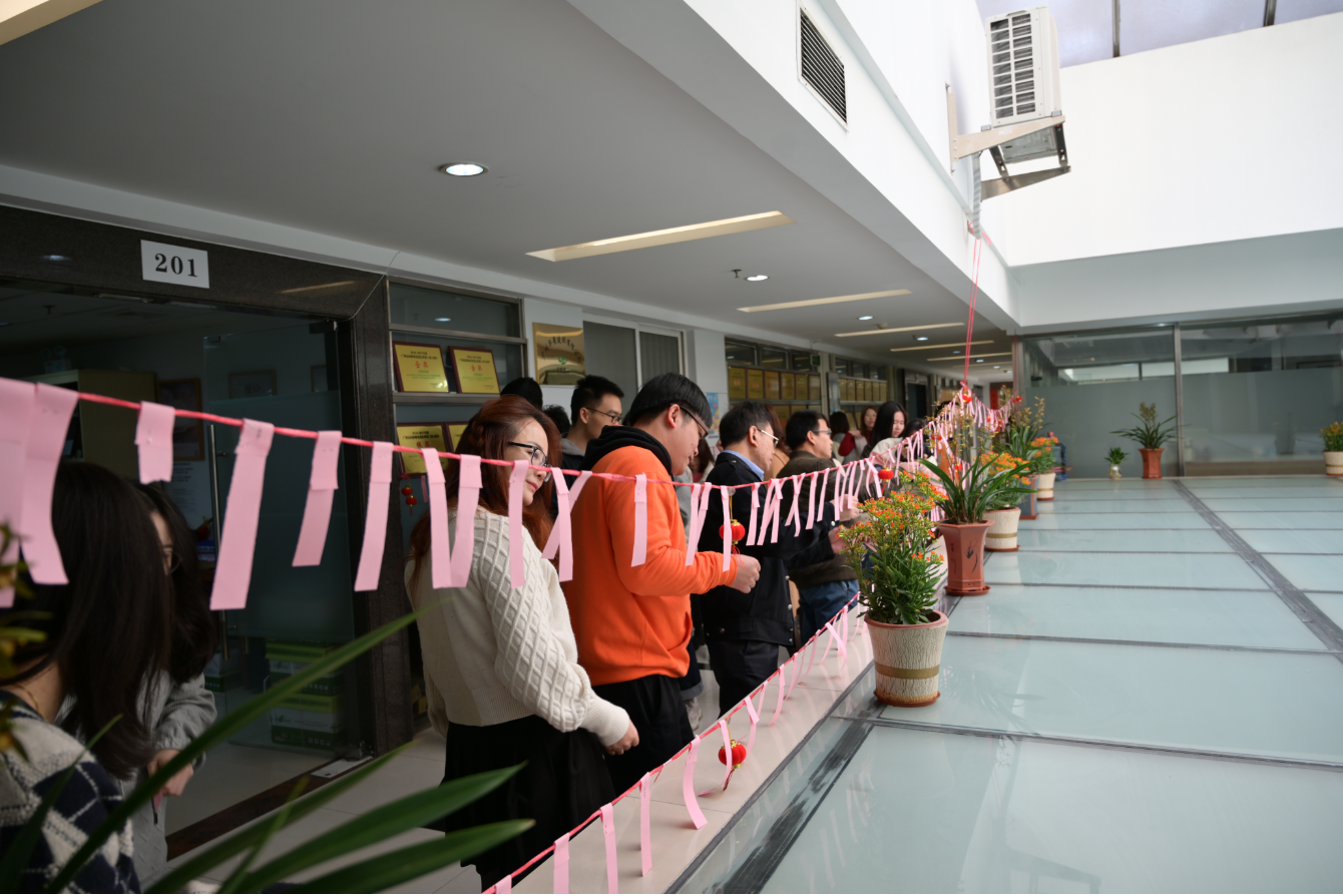 隨即,同事們紛紛參與其中,妙趣橫生、富有挑戰(zhàn)的燈謎,吸引著大家的眼球,謎語既有傳統(tǒng)習俗、天文地理、歷史人文,還有公司歷年業(yè)績、文化制度等內(nèi)容,現(xiàn)場準備的300多條謎語陸續(xù)被搶答而空。
